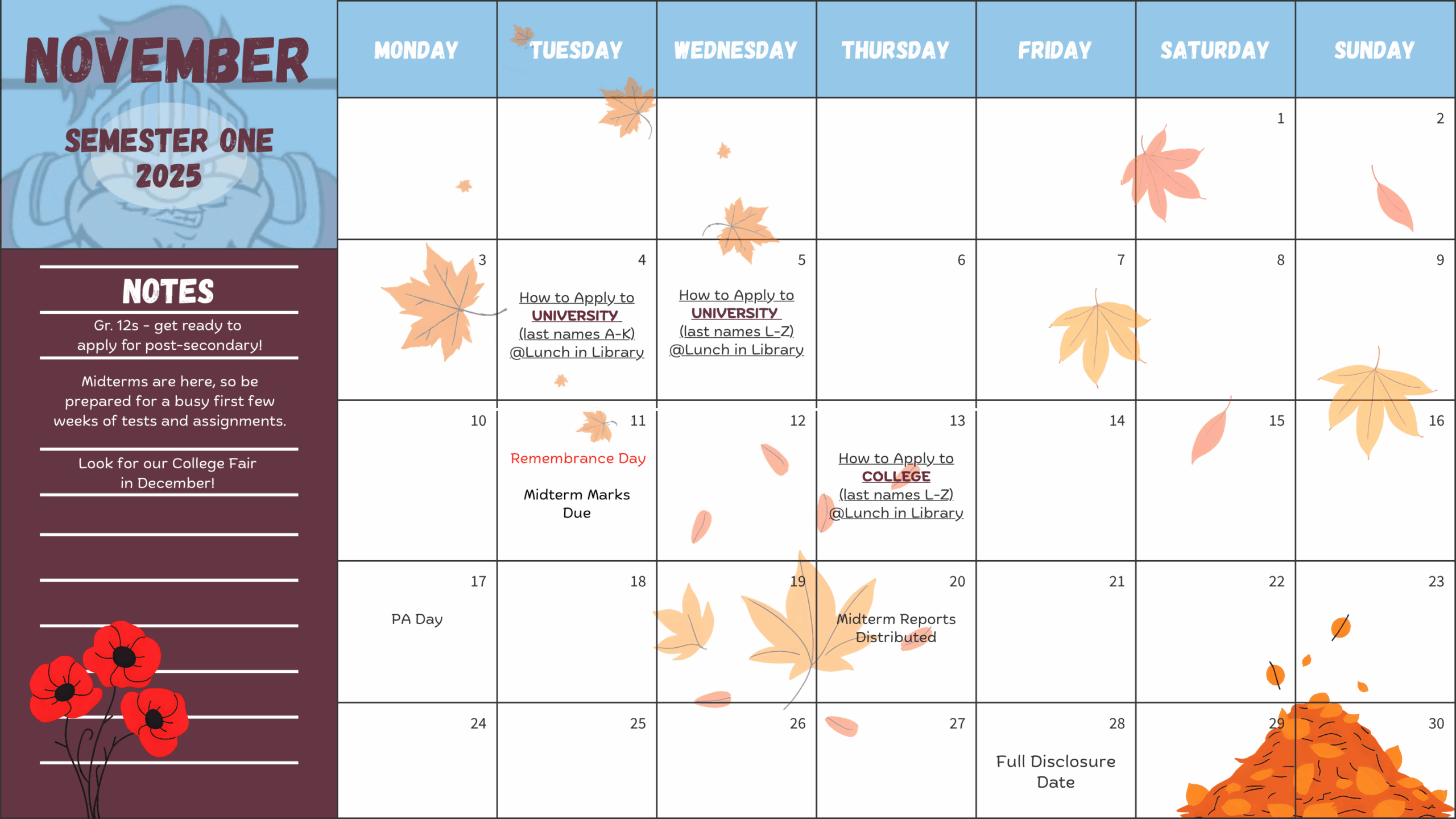 Guidance Google Classroom Codes for the 25/26 school year:Gr. 9 students join: unxsx5fs Gr. 10 students join: txcqea2 Gr. 11 students join: zfkiak2 Gr. 12 and 12+ students join: ehnmxrx |